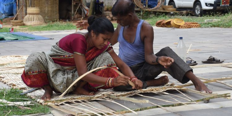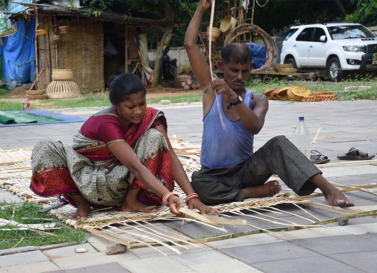 A couple engaged in the making of bambooware near Rajmahal Square, Bhubaneswar