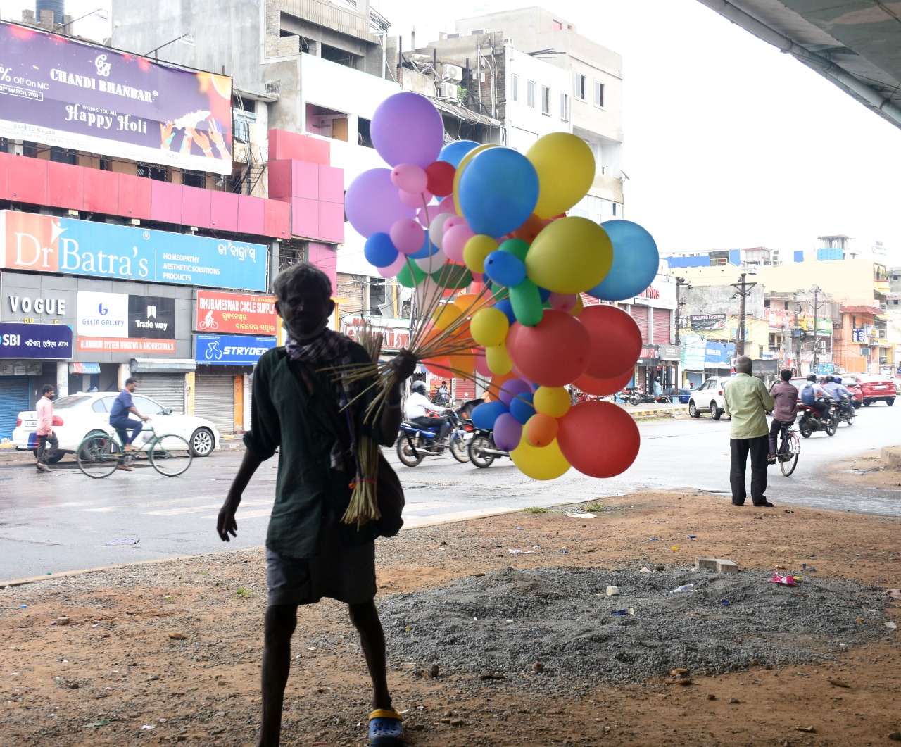 A man sells balloons at Rajmahal Square in Bhubaneswar