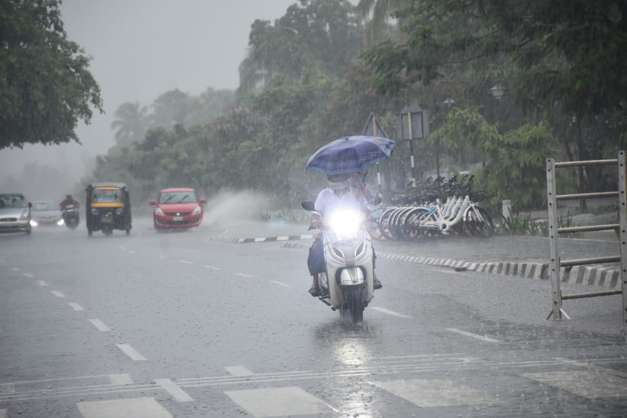 A spectacular view of vehicles plying on road after heavy rainfall at Cuttack