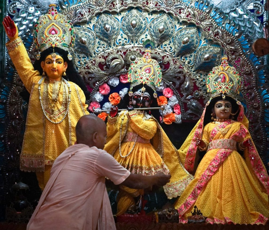 Radhakrishna idols in Cuttack’s Sachidananda mutt being decked up ahead of Janmashtami