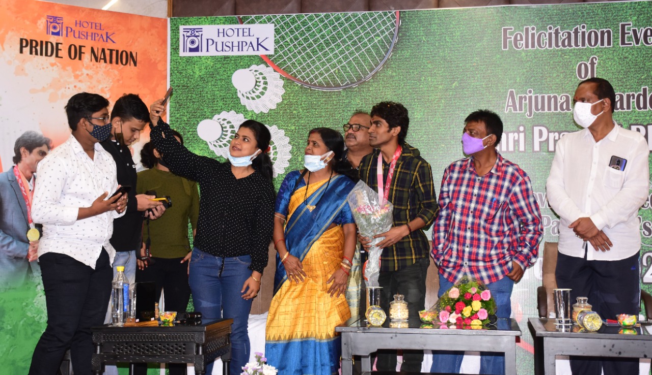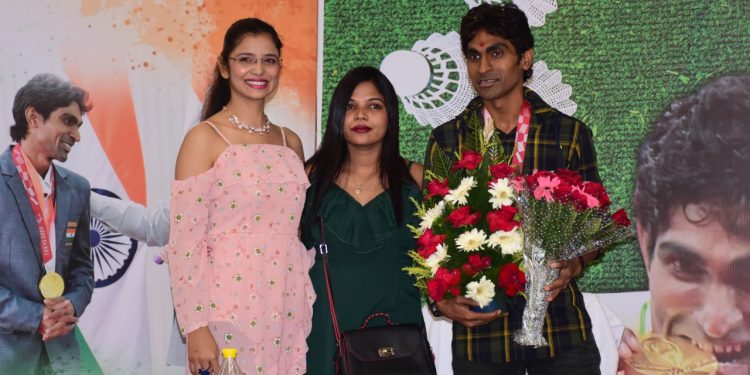 Paralympic gold medallist Pramod Bhagat being felicitated in Bhubaneswar