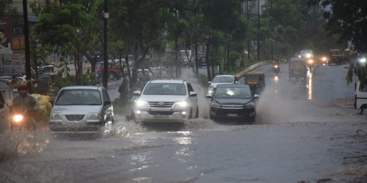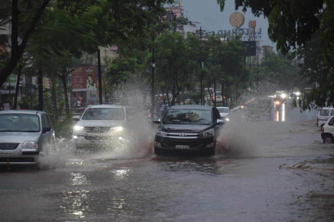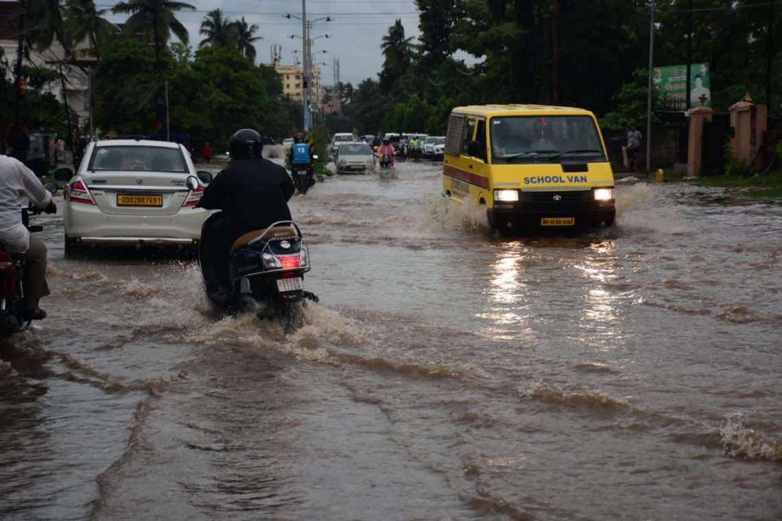 Waterlogging on the stretch between Sishu Bhavan Square and Airport Road in Bhubaneswar