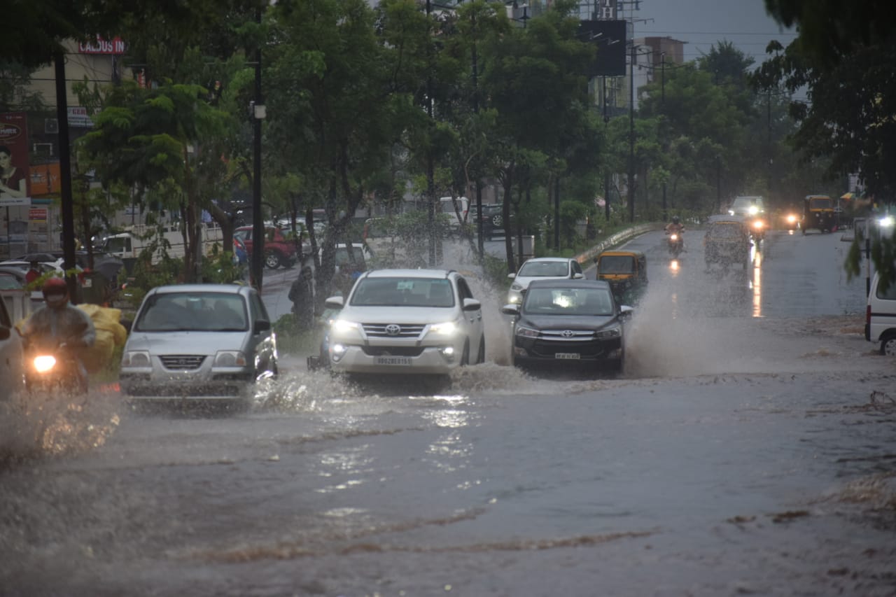 Waterlogging on the stretch between Sishu Bhavan Square and Airport Road in Bhubaneswar