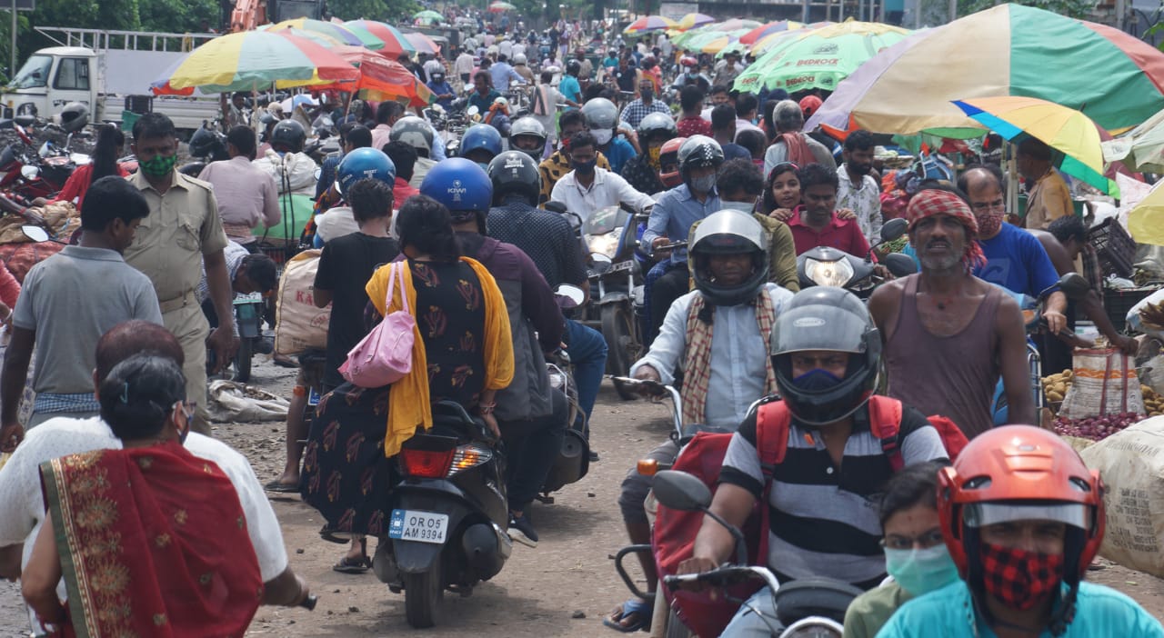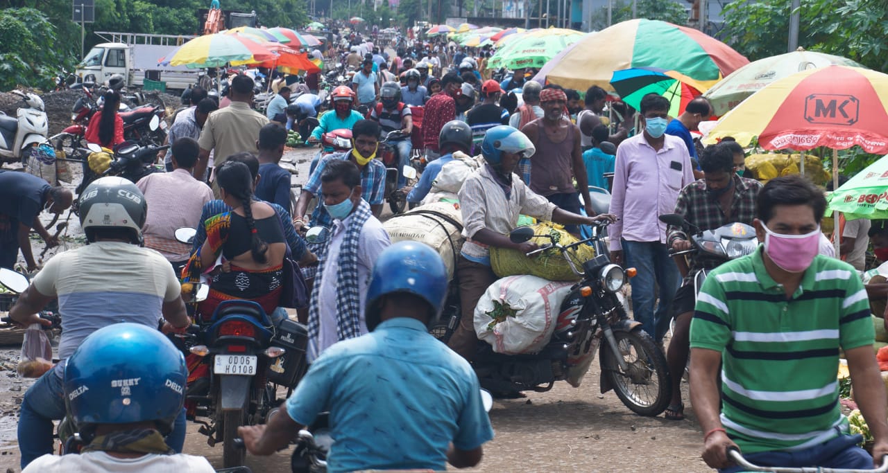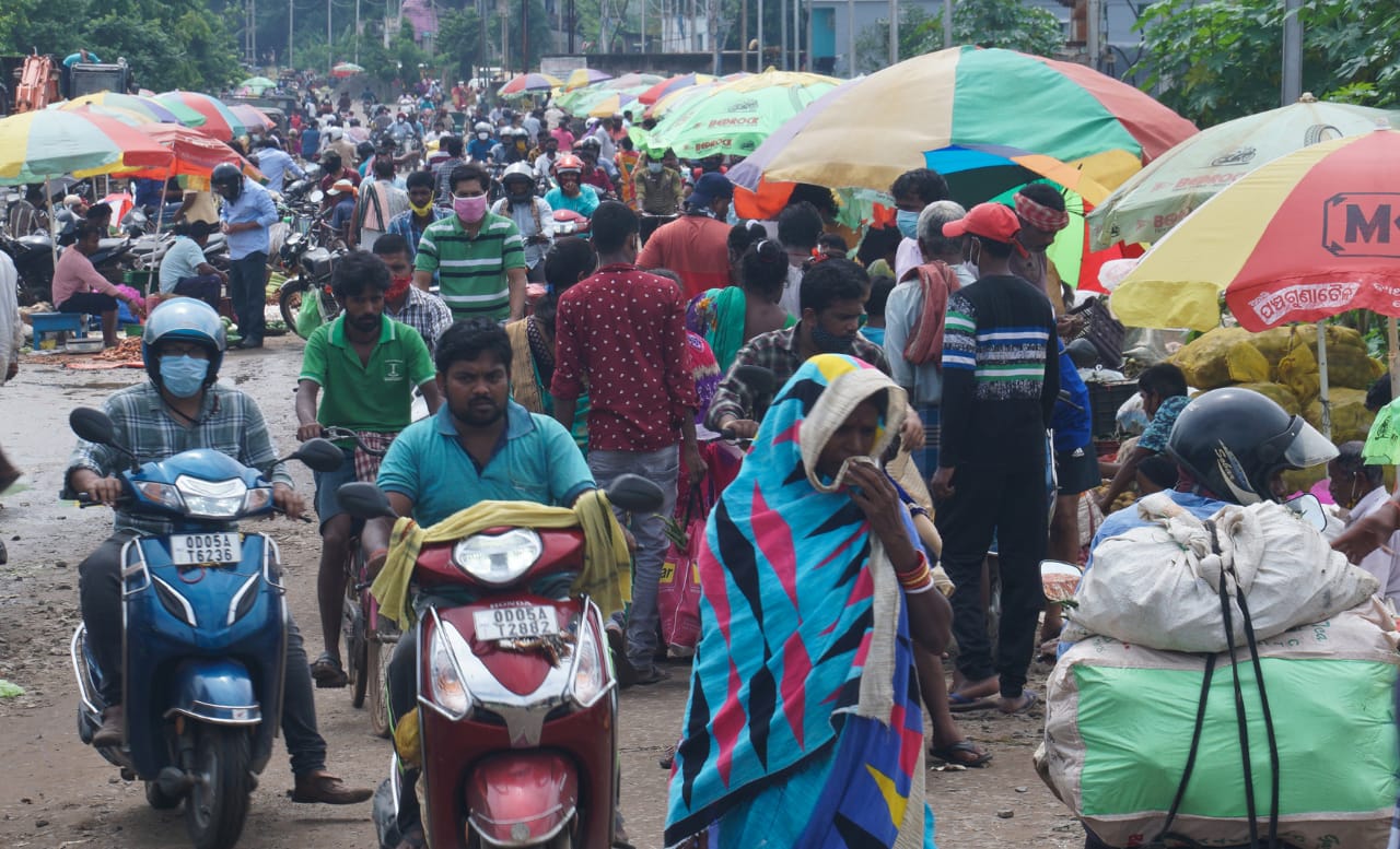 Denizens throng Chhatra Bazaar market in Cuttack to buy vegetables