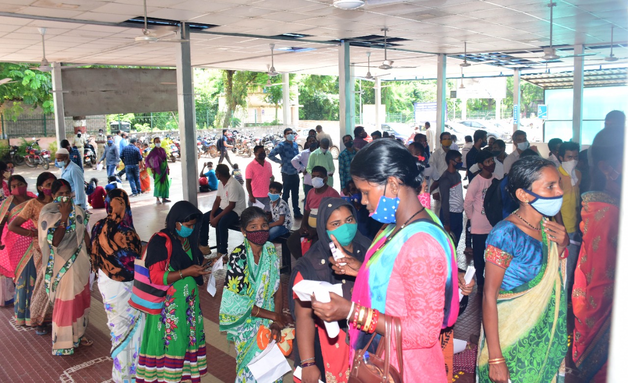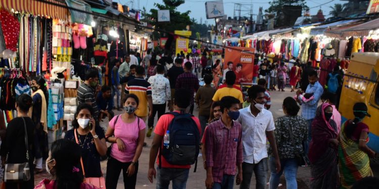 Social distancing goes for a toss at Capital Hospital, Unit-II Market in Bhubaneswar