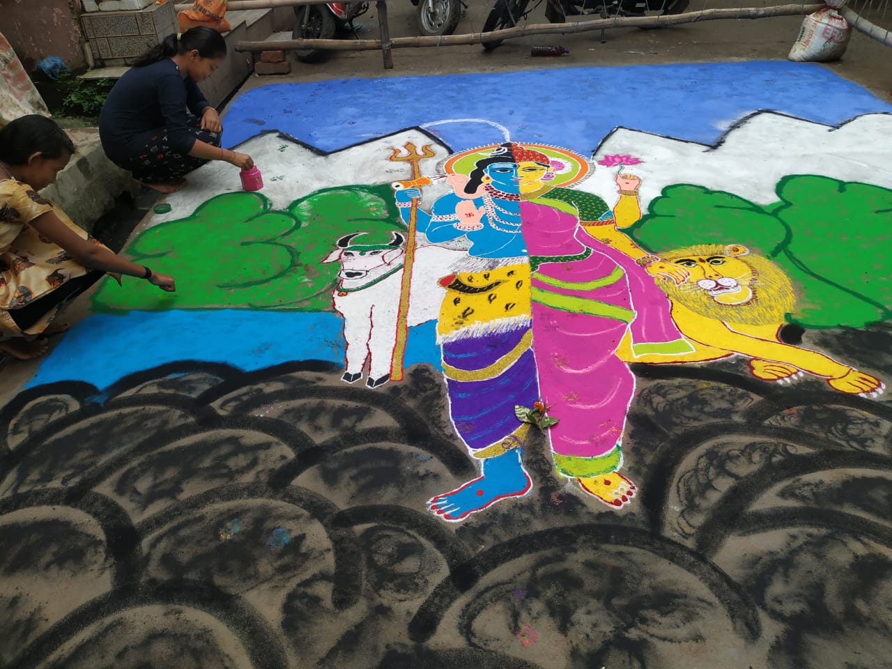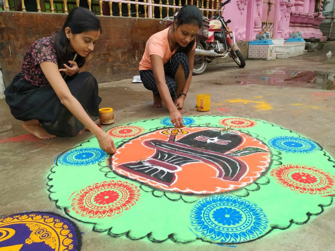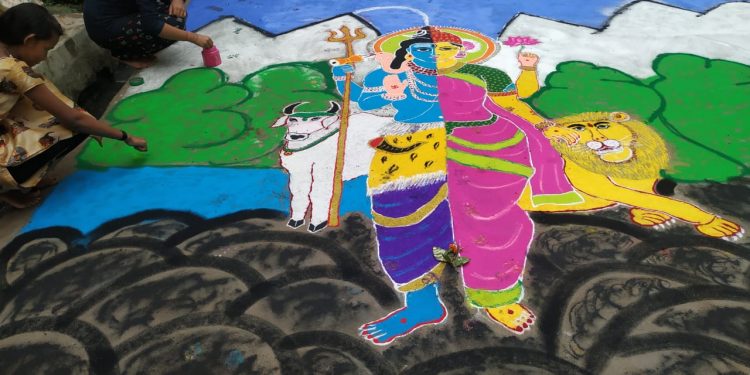 On the auspicious occasion of Panchaka, young girls put rangoli outside their house at Sankarpur area of Badambadi in Cuttack