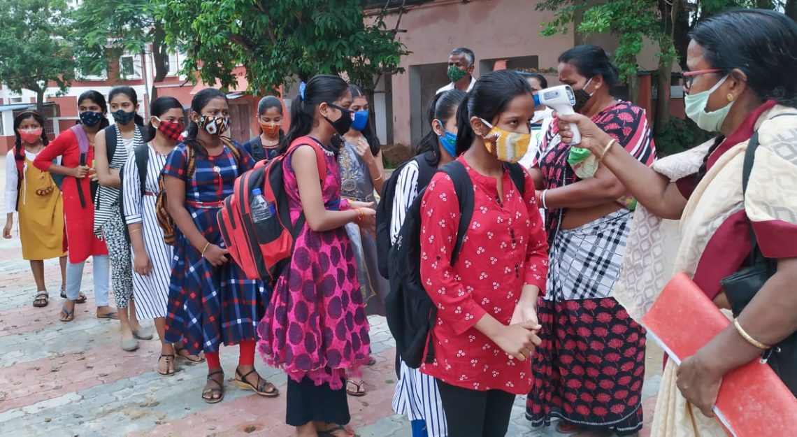 Class VI and VII students were screened before entering their classrooms at the Ravenshaw Government Girls High School