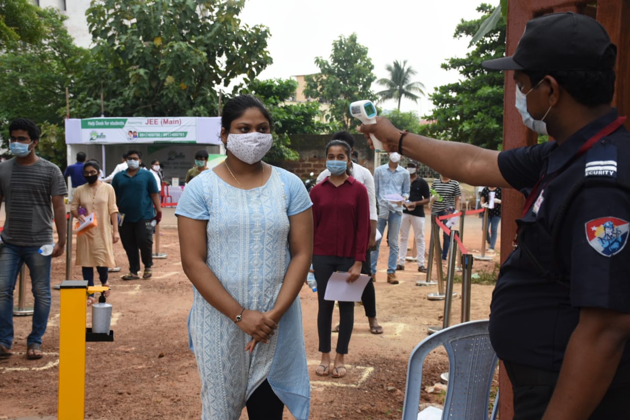 Candidates appearing for JEE-Mains undergo thermal screening at Patia in Bhubaneswar