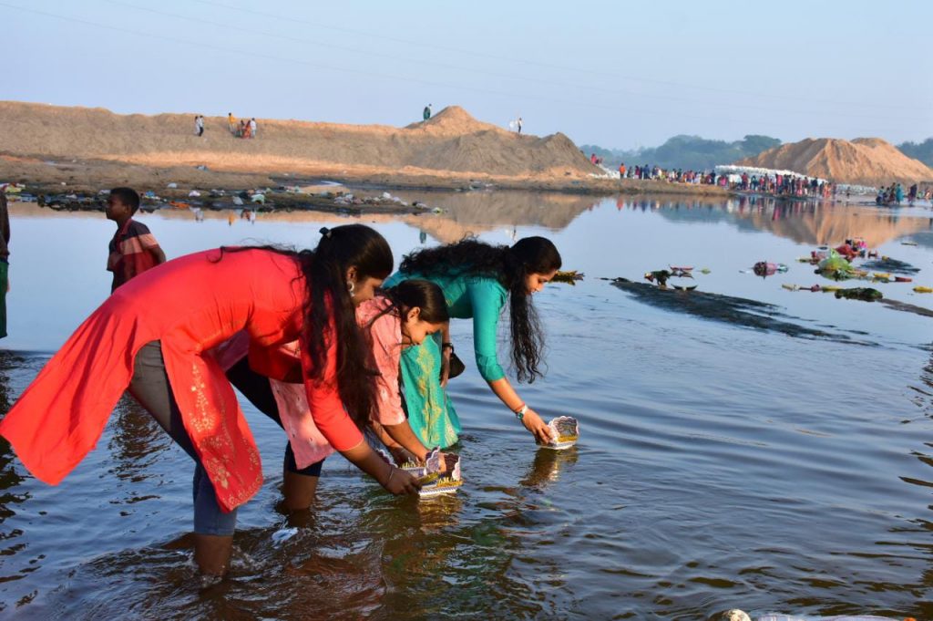 Denizens celebrate Kartika Purnima by sailing miniature boats at Kuakhai River on Bhubaneswar outskirts