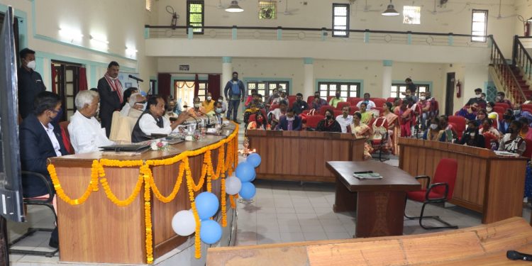 Odisha Assembly Speaker Surjya Narayan Patro and other guests attend a mock assembly held at the Old Assembly building organized by the Odisha State Commission for Protection of Child Rights