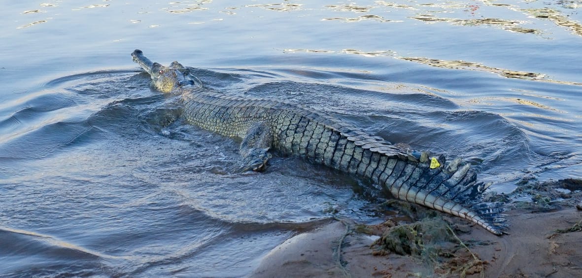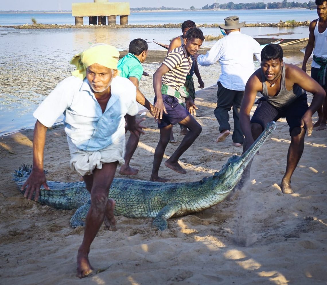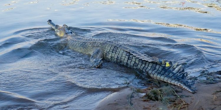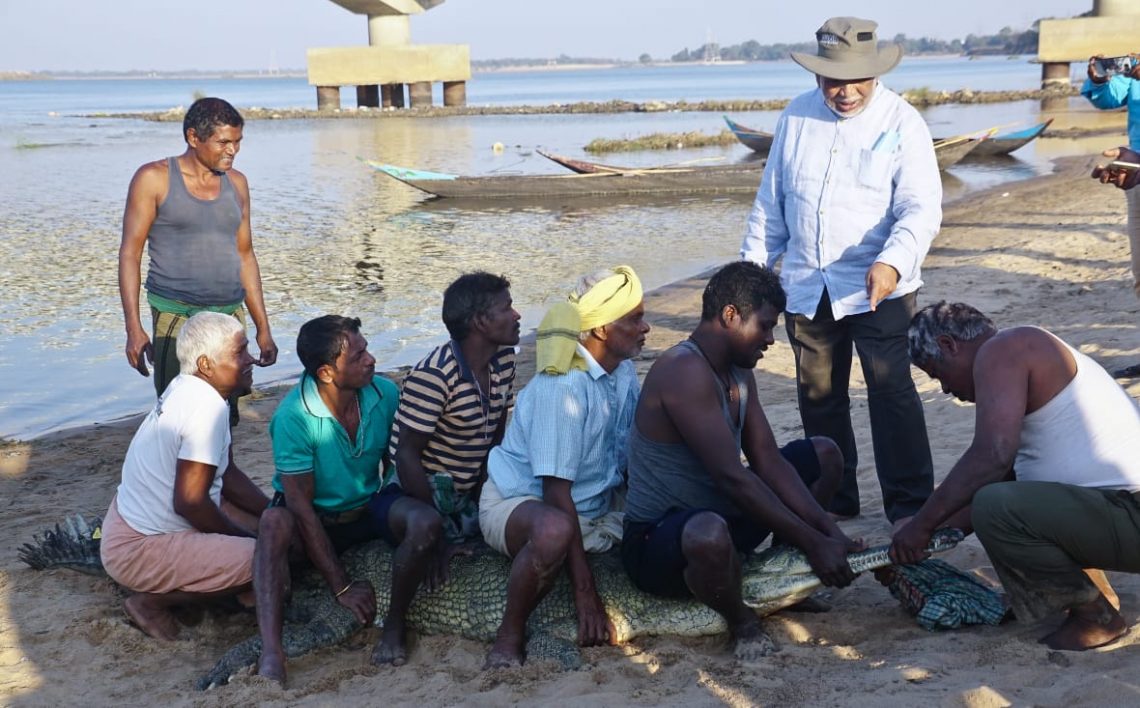 Forest department officials Monday trapped the Ghariyal using nets which was seen near the Madhusudan Setu in Cuttack. On examination it was found that the reptile’s mouth had got entangled in plastic thread. After removing the threads, the Ghariyal was again released into the Mahanadi at a desolate place