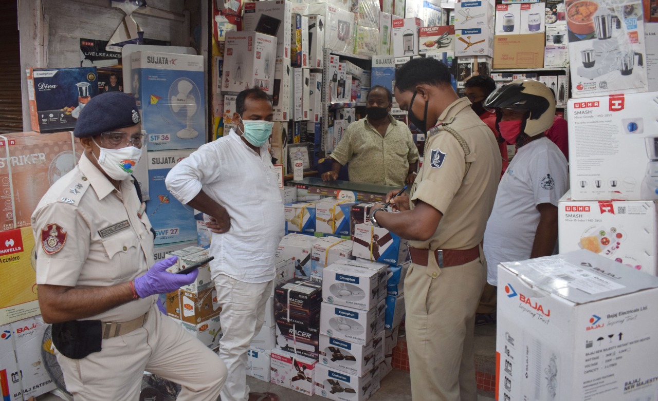 Police personnel raid shops in Bapuji Nagar and Ashok Nagar area in Bhubaneswar for COVID norm violation