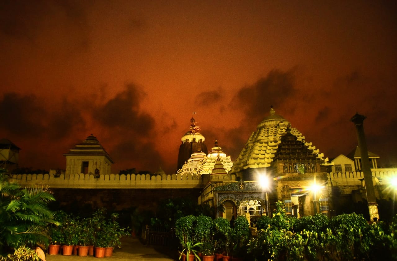 Black clouds above the Puri Srimandir, Friday evening