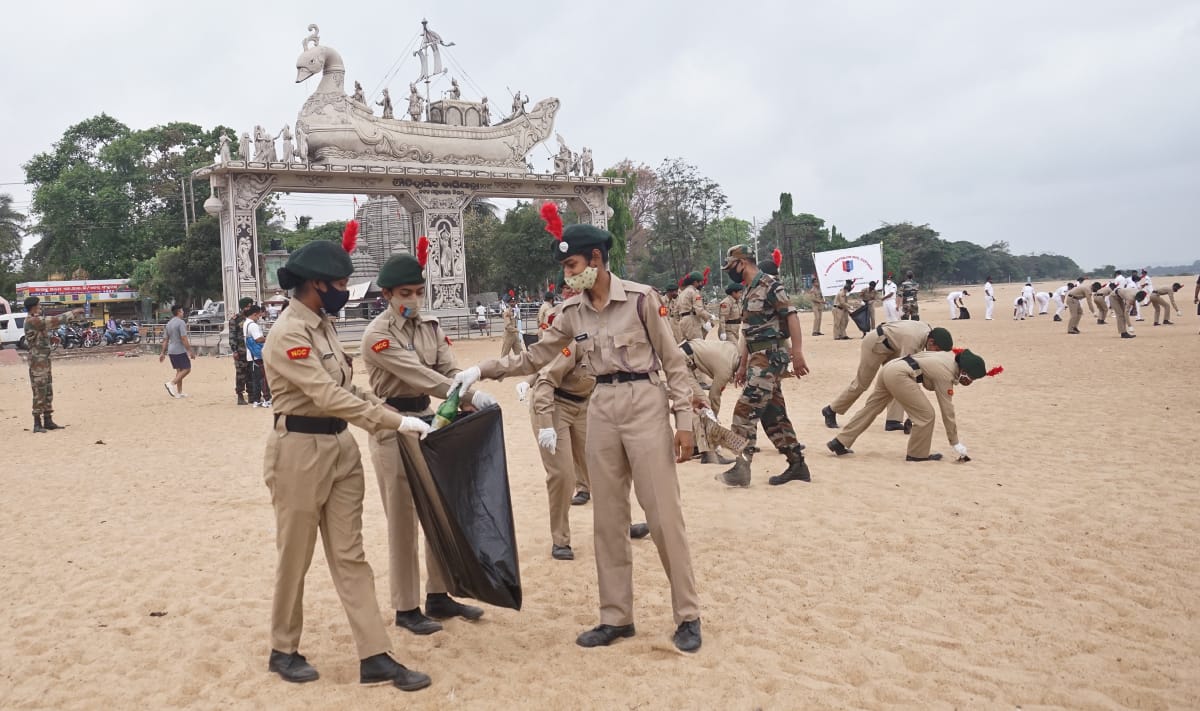 NCC cadets clean Baliyatra Lower Ground in Cuttack as part of National Maritime Day celebration