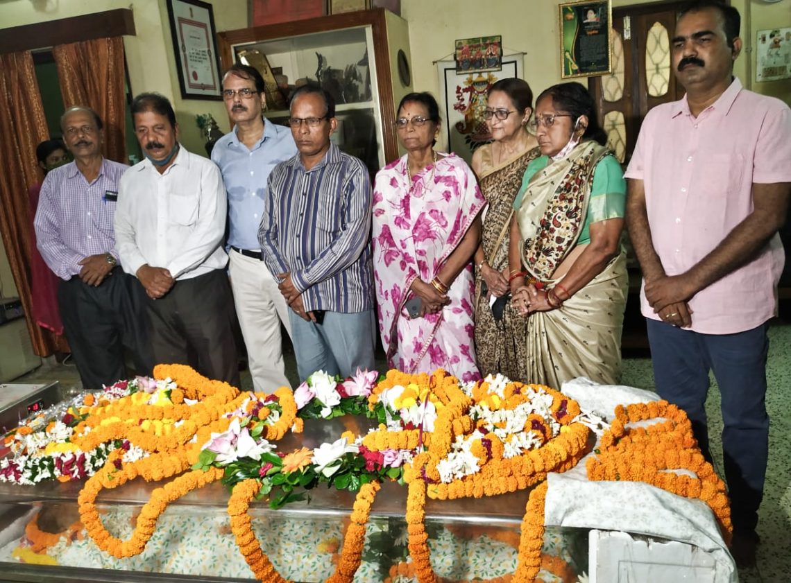 Relatives and family members pay their last respects to Padma Shri Binapani Mohanty at her residence in Badambadi, Cuttack