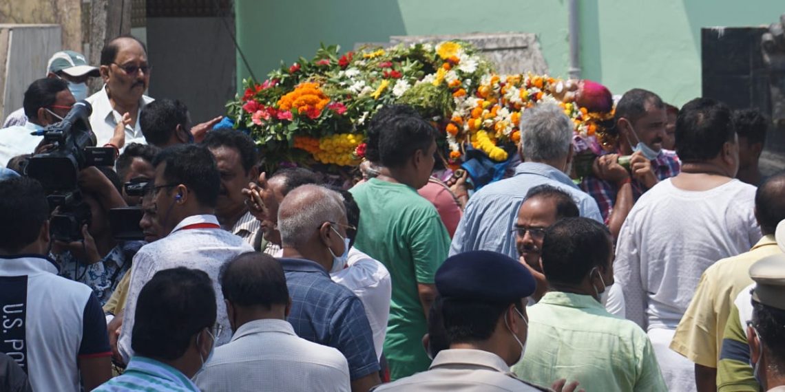 The mortal remains of noted litterateur Binapani Mohanty was taken to the Sati Chaura crematorium for her last rites