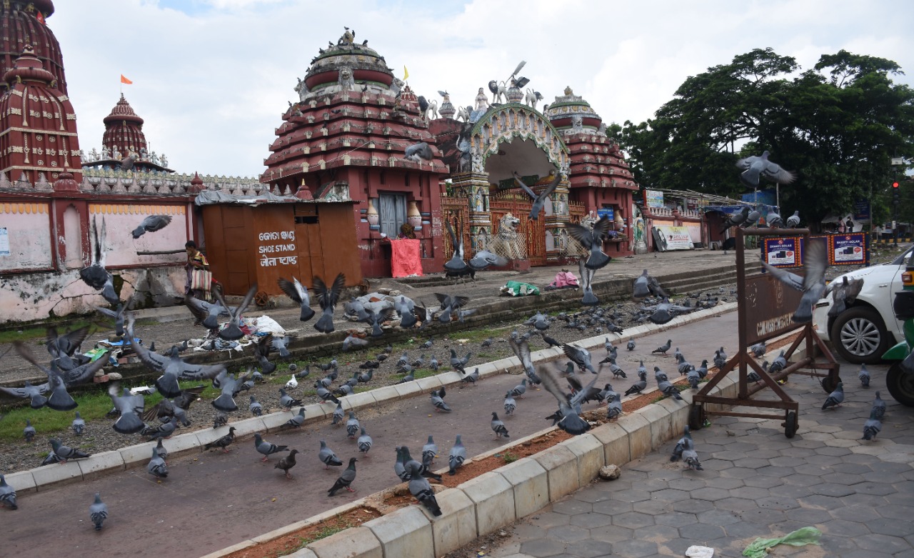 A group of pigeons searching food near Ram Mandir in Bhubaneswar