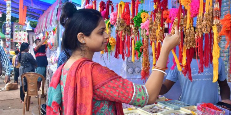 Girls line up at Rakhi stalls in Unit-I area of Bhubaneswar ahead of Raksha Bandhan