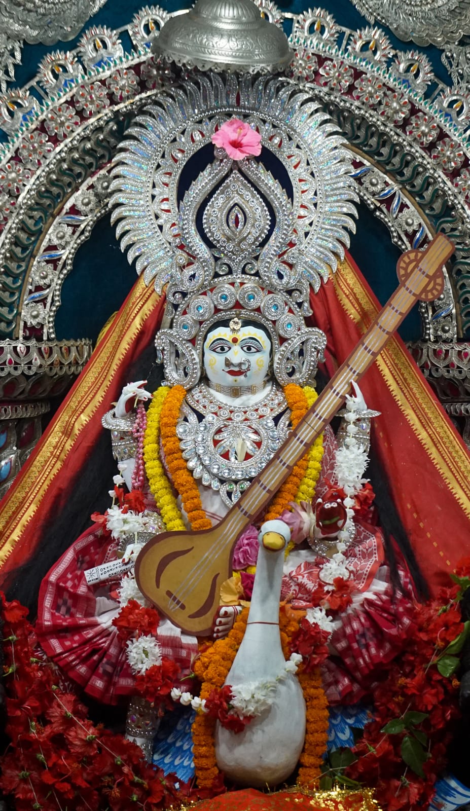 Goddess Jhanjiri Mangala decked up in Saraswati attire.