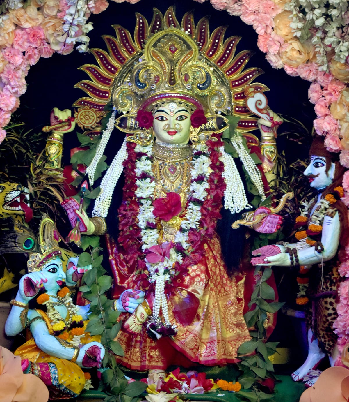 Goddess Basanti Durga wearing a Narayani attire at a temple in Cuttack