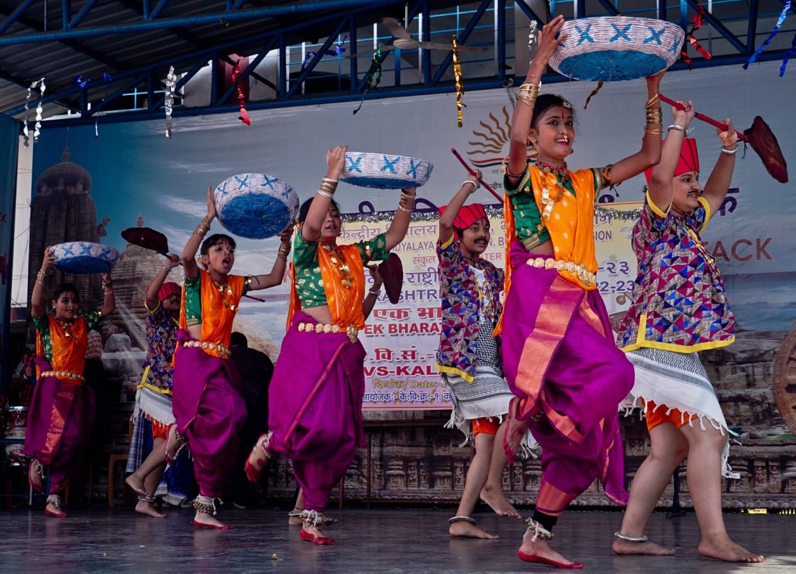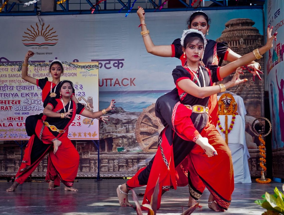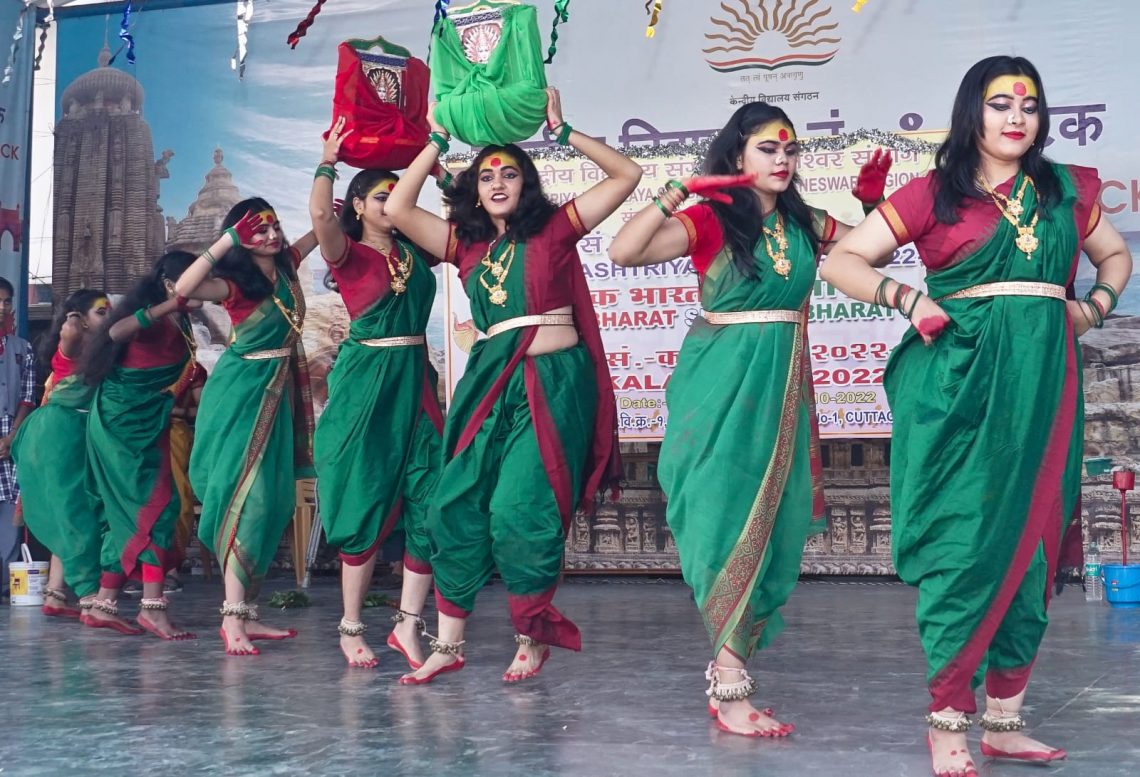 Girls students participate in a cultural function at Kendriya Vidyalaya in Cuttack’s CDA area