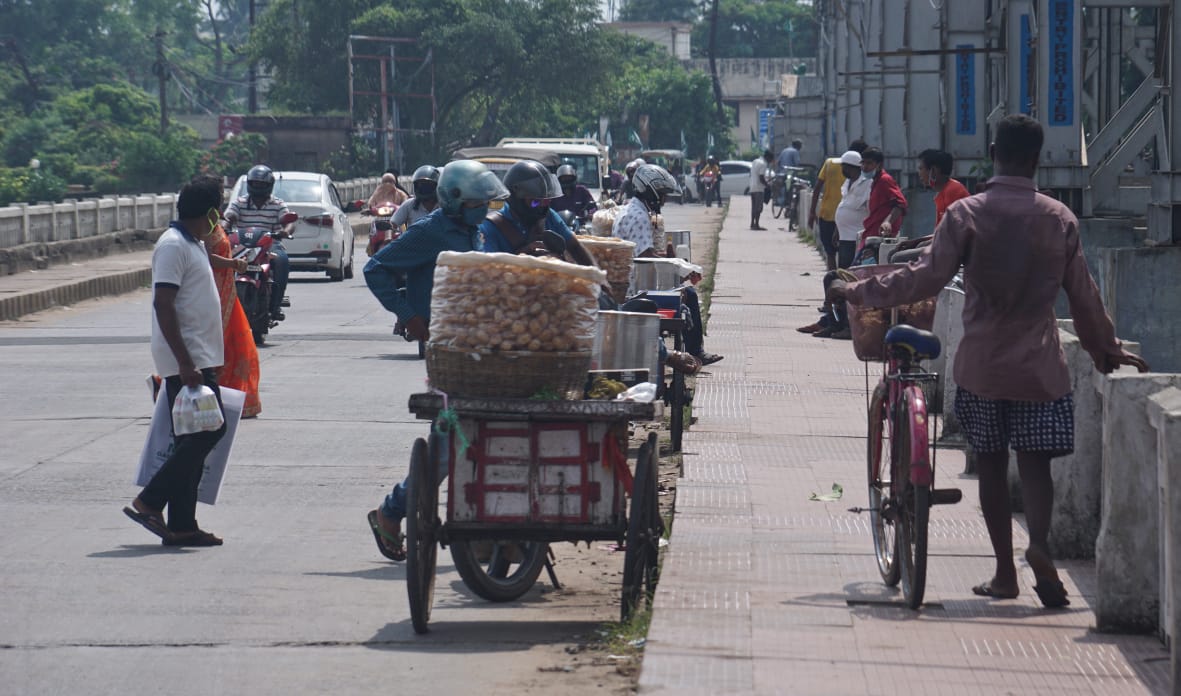 Street vendors occupy main road near Jobra barrage in Cuttack leading to traffic jams