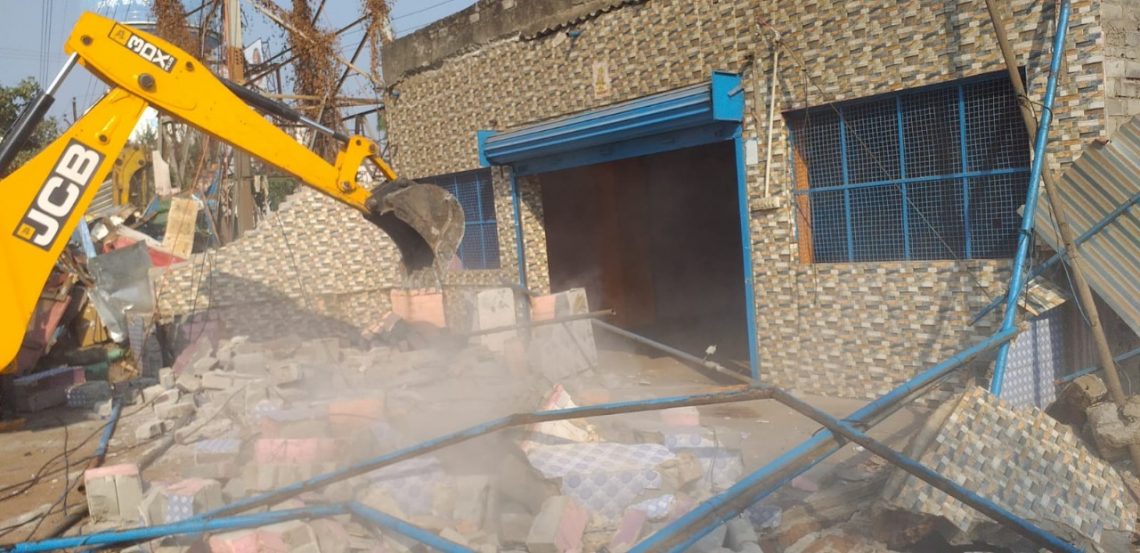 BDA demolishes illegal construction near Bayababa Mutt in Bhubaneswar