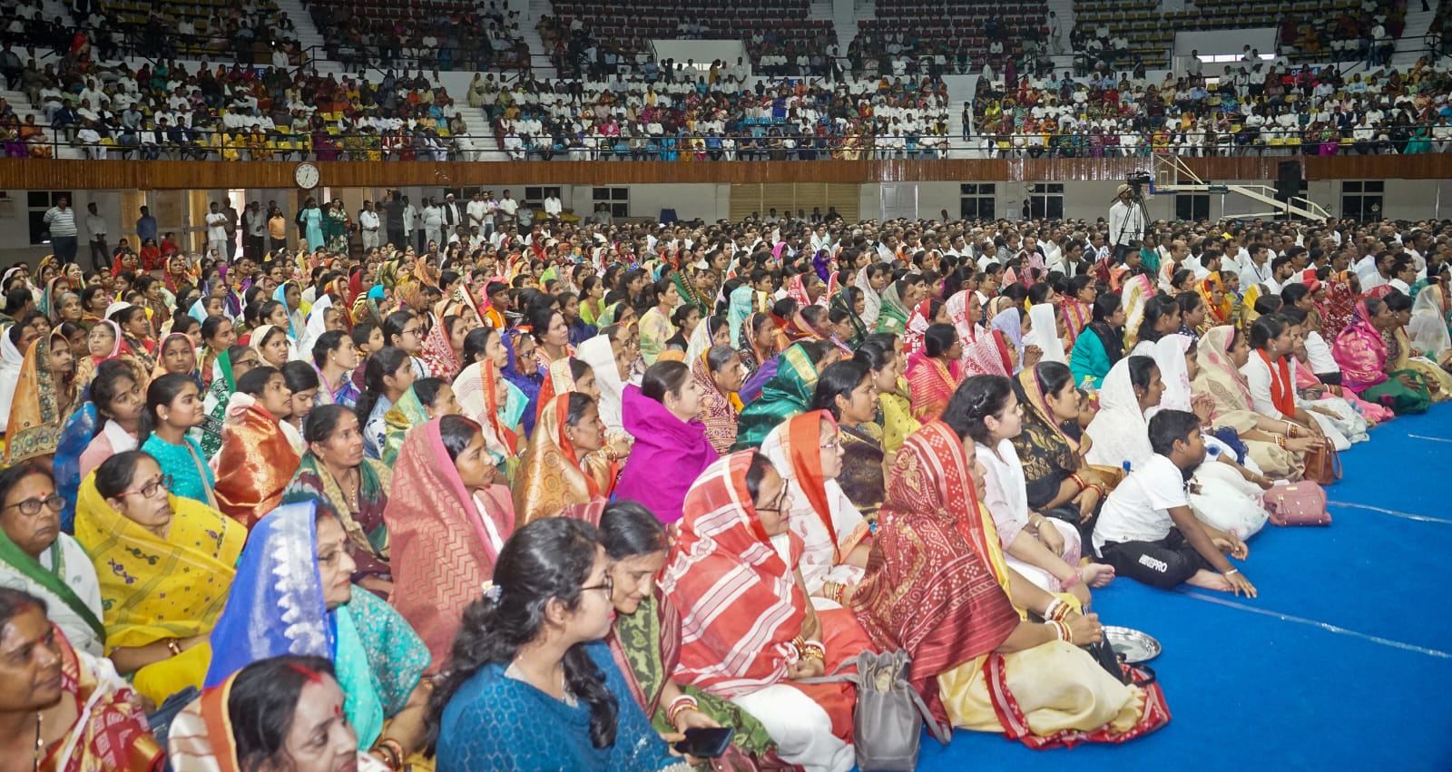 Followers of Sri Aurobindo participate in religious congregation at JN Indoor Stadium, Cuttack
