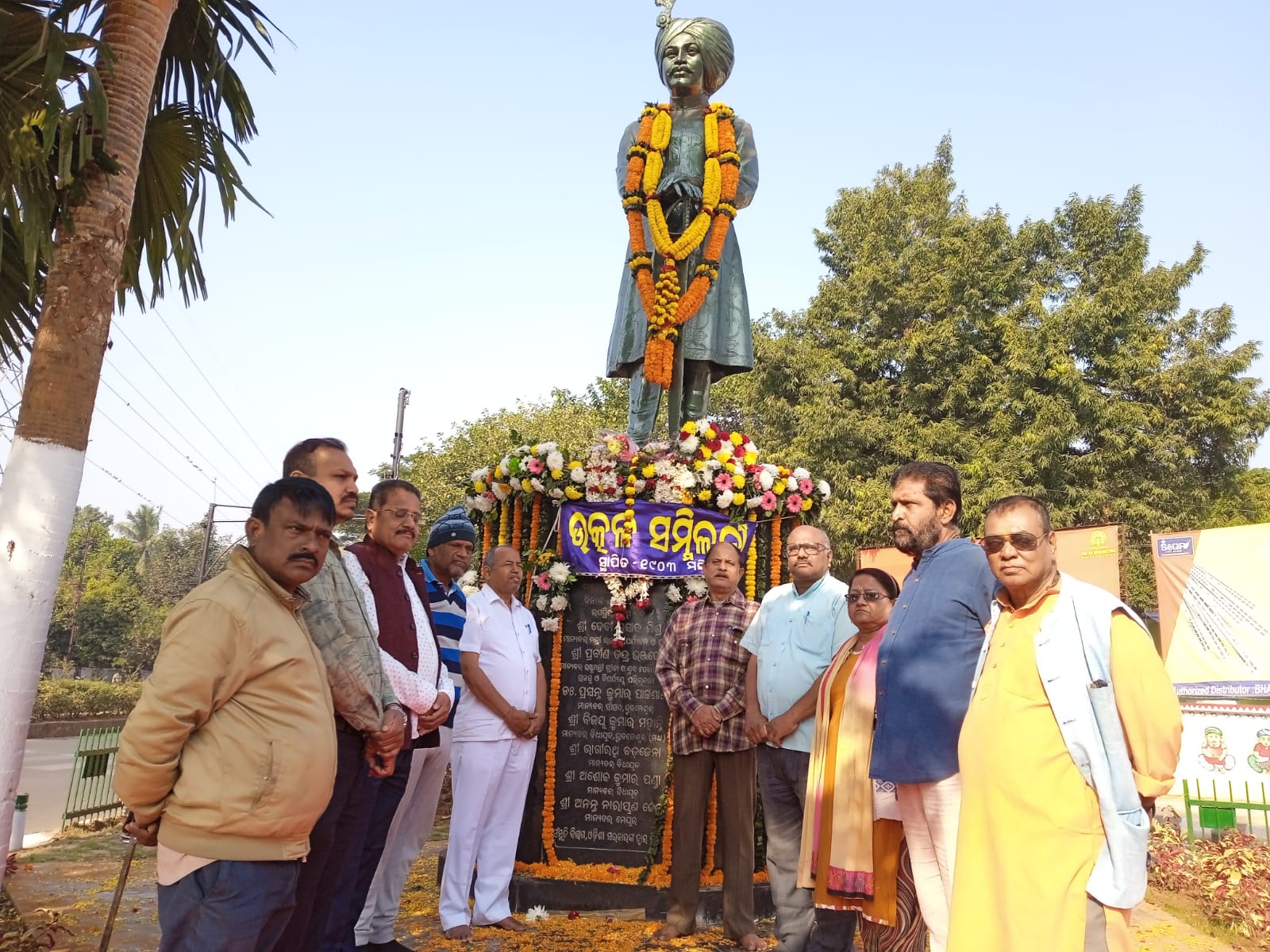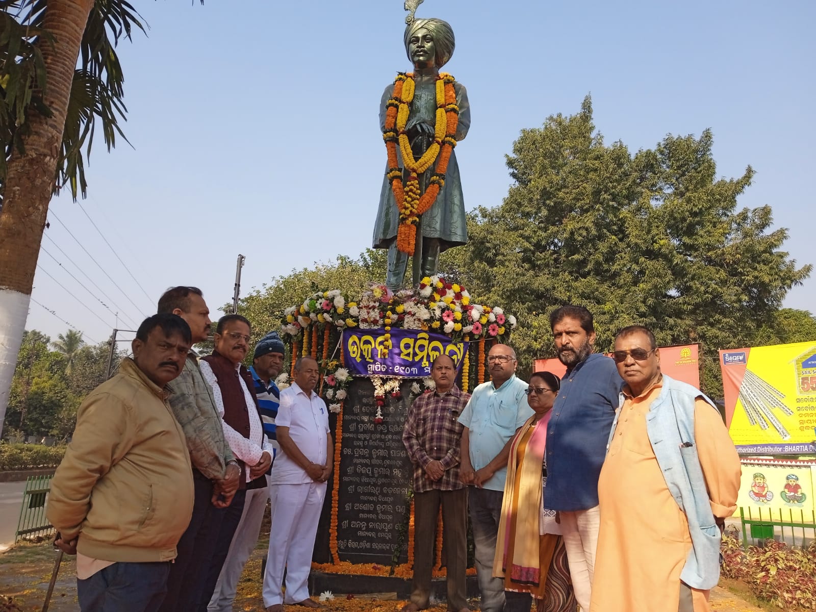 Members of Utkal Sammilani garland statute of Maharaja Sriram Chandra Bhanjadeo on his 125th birth anniversary at Power House square in Bhubaneswar