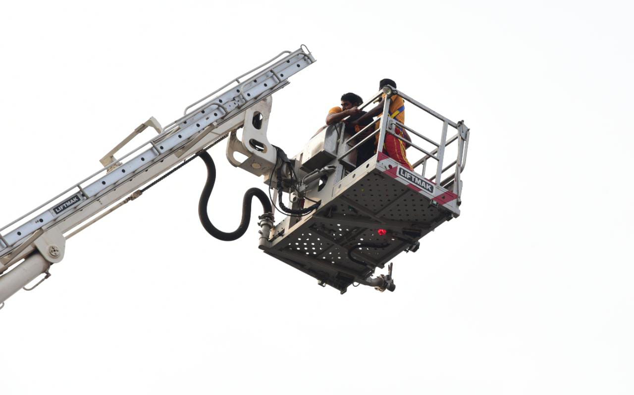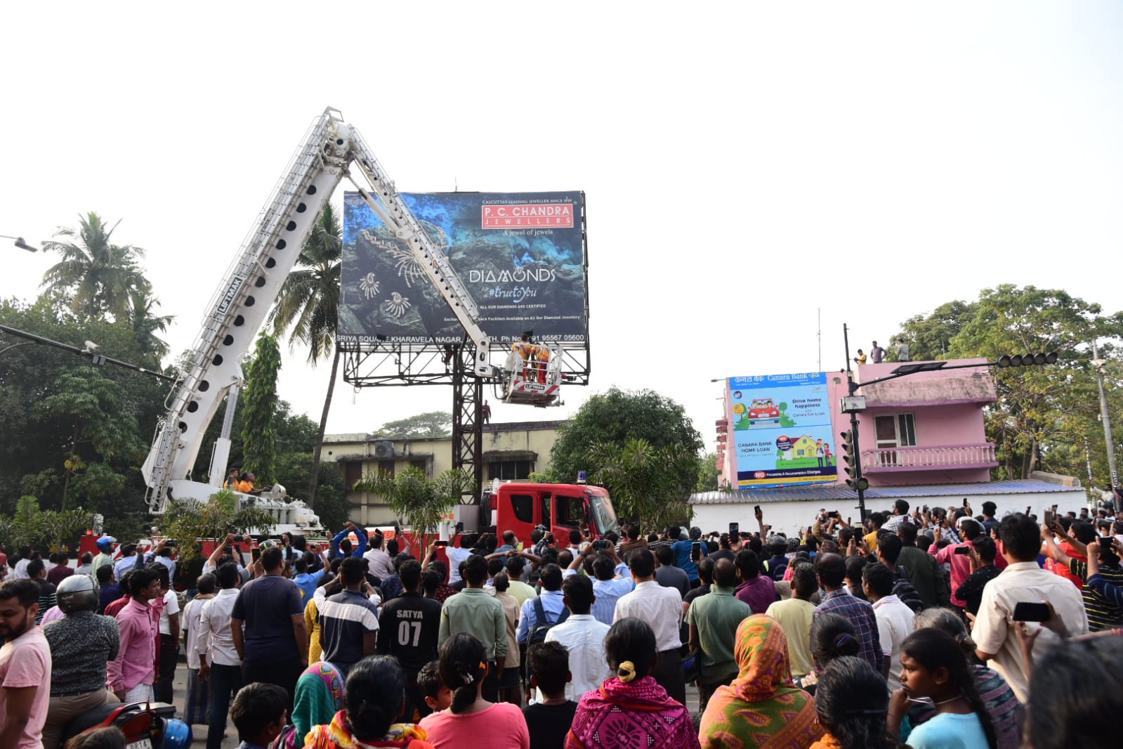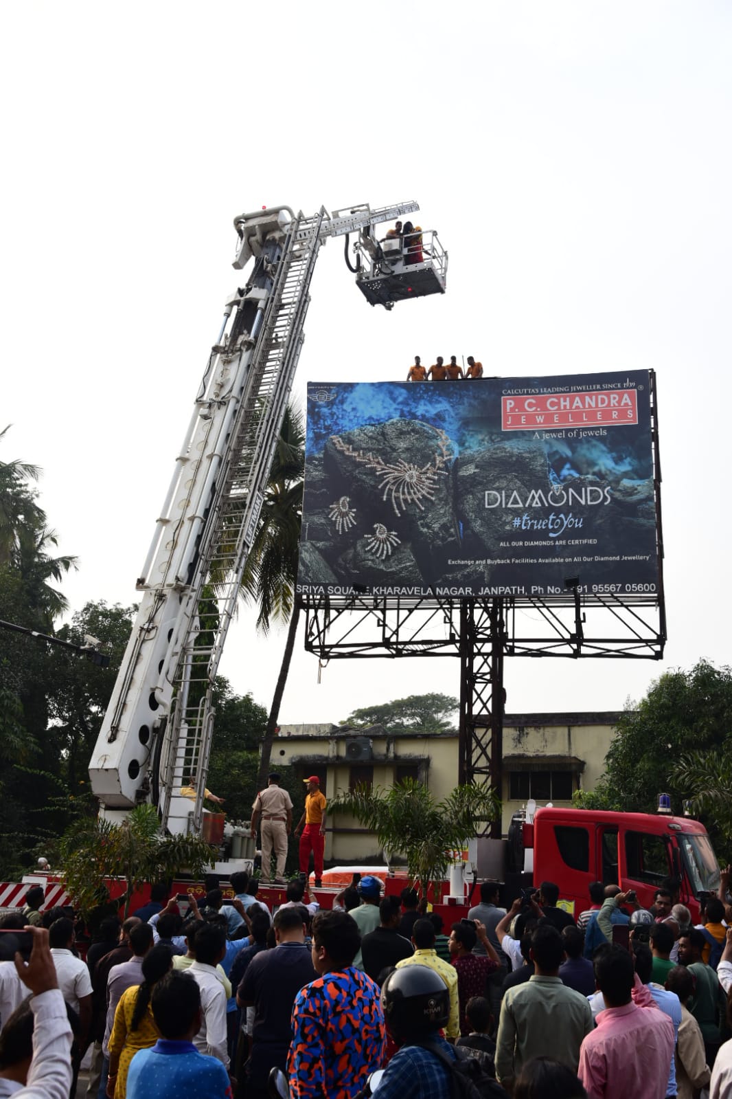 Social activist, who climbed atop a hoarding at Sishu Bhavan square in Bhubaneswar threatening to attempt suicide over delayed projects, rescued by Fire Services personnel