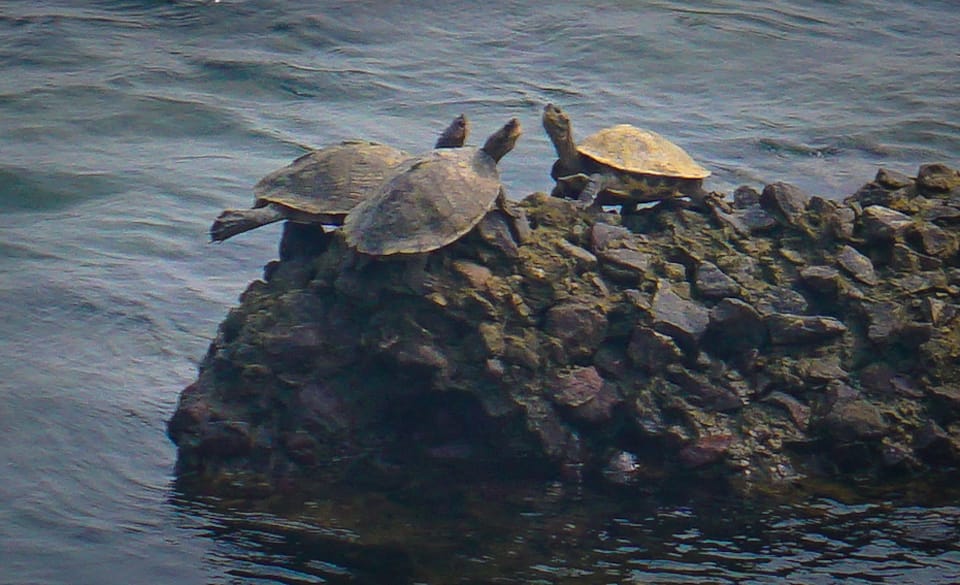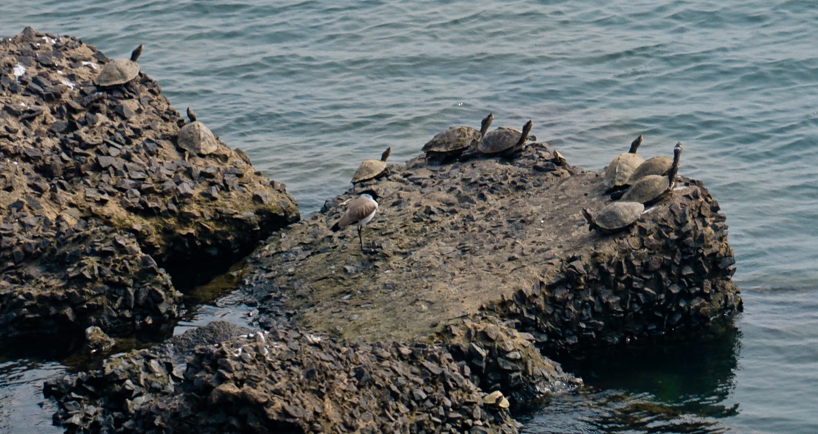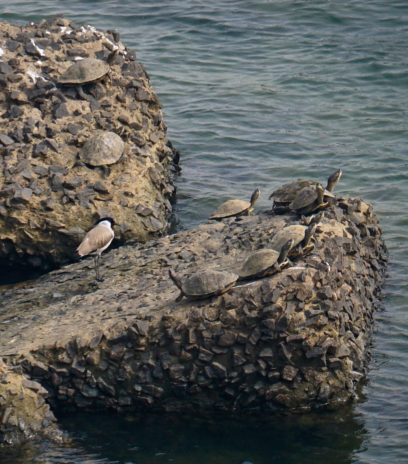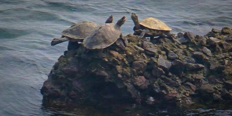 Turtles rest atop a mound in Jobra anicut, Cuttack