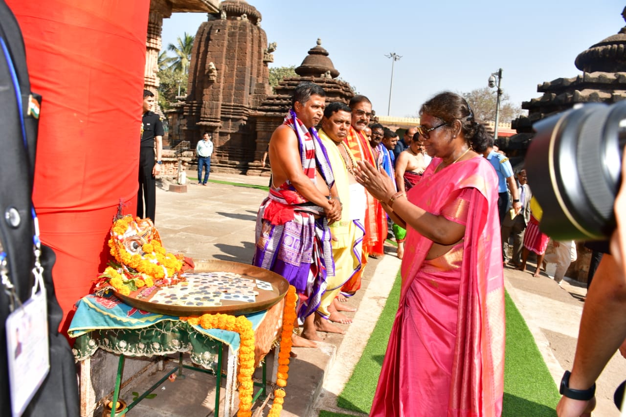 President Droupadi Murmu offers prayer at Lingaraja Temple in Bhubaneswar