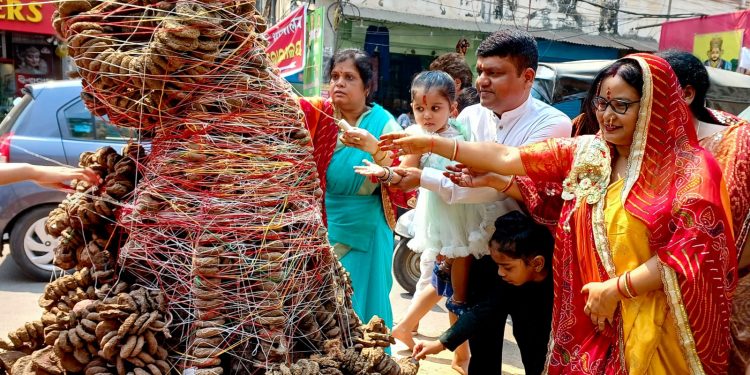 Marwari women celebrate ‘Holika Dahan’ at Naya Sarak area in Cuttack
