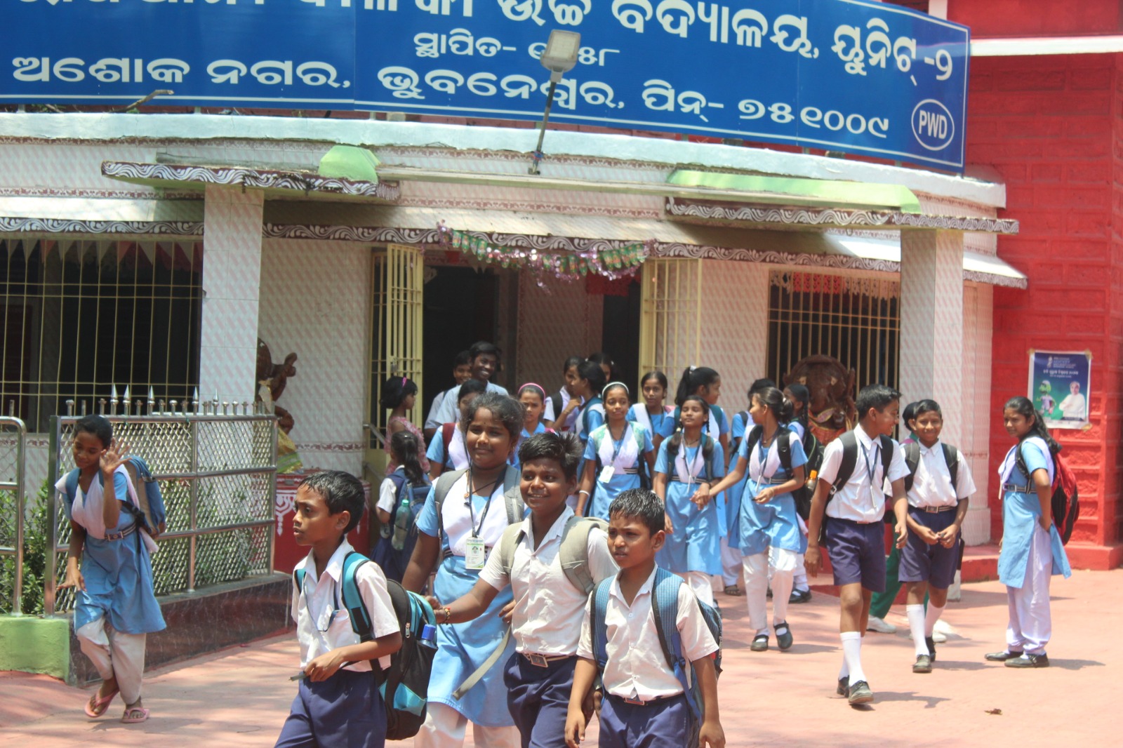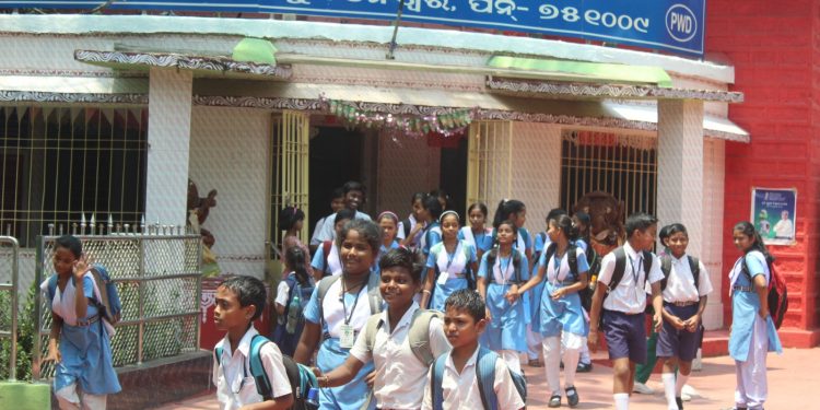 Students of Capital Girls’ High School at Unit-II, Bhubaneswar head back home after completion of morning classes that began today