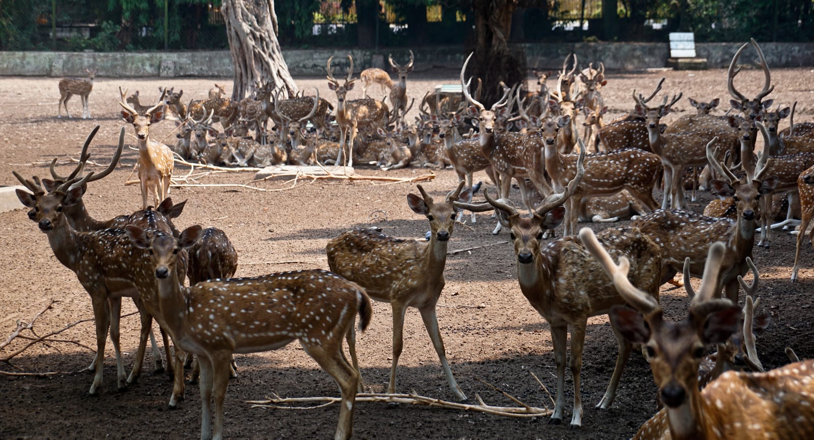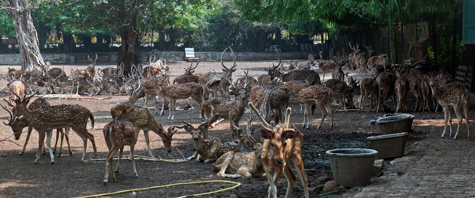 A parcel of deer rest under tree at Tulasipur Deer Park in Cuttack