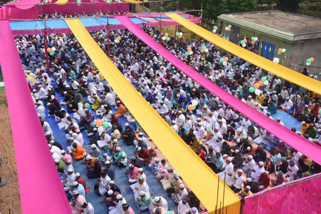 People attend Eid ul-Fitr prayers in Bhubaneswar marking the end of the fasting month of Ramadan