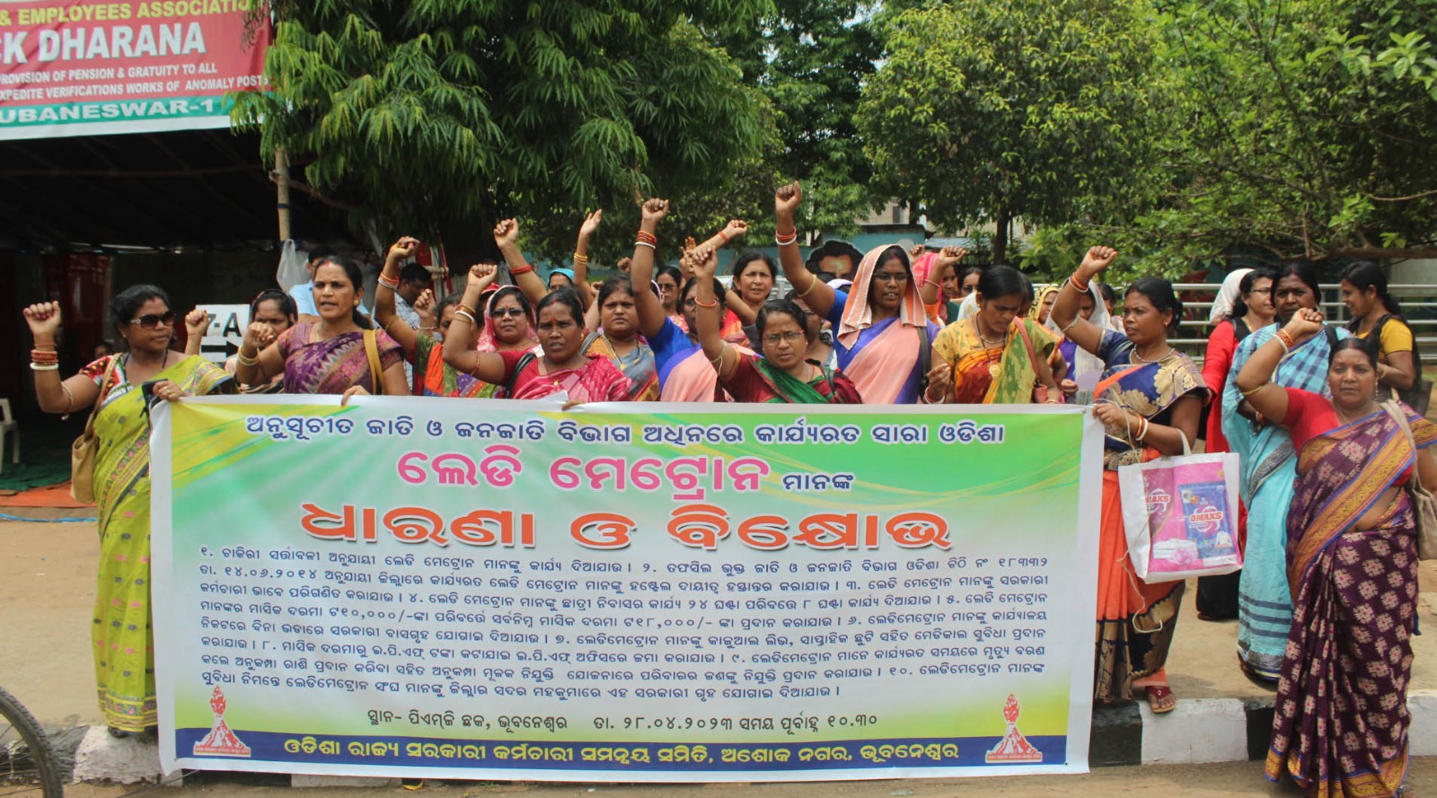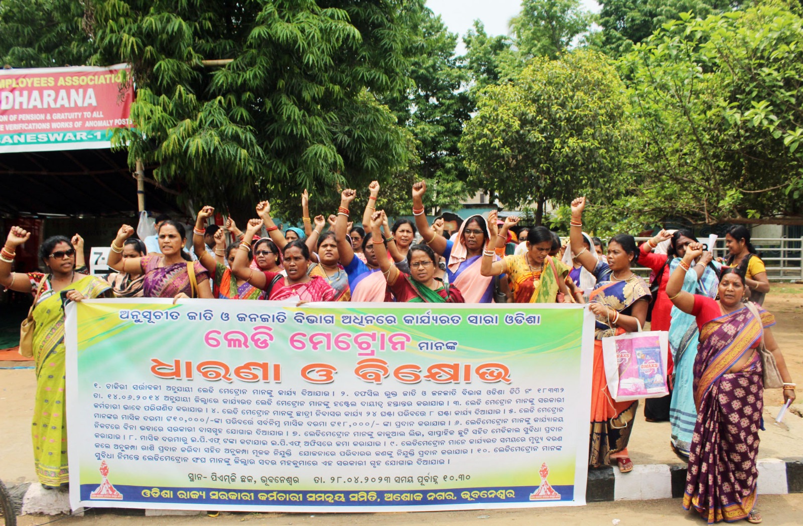 Lady matrons working under SC/ST department stage protest at PMG Square in Bhubaneswar seeking fulfillment of their 10-point charter of demands