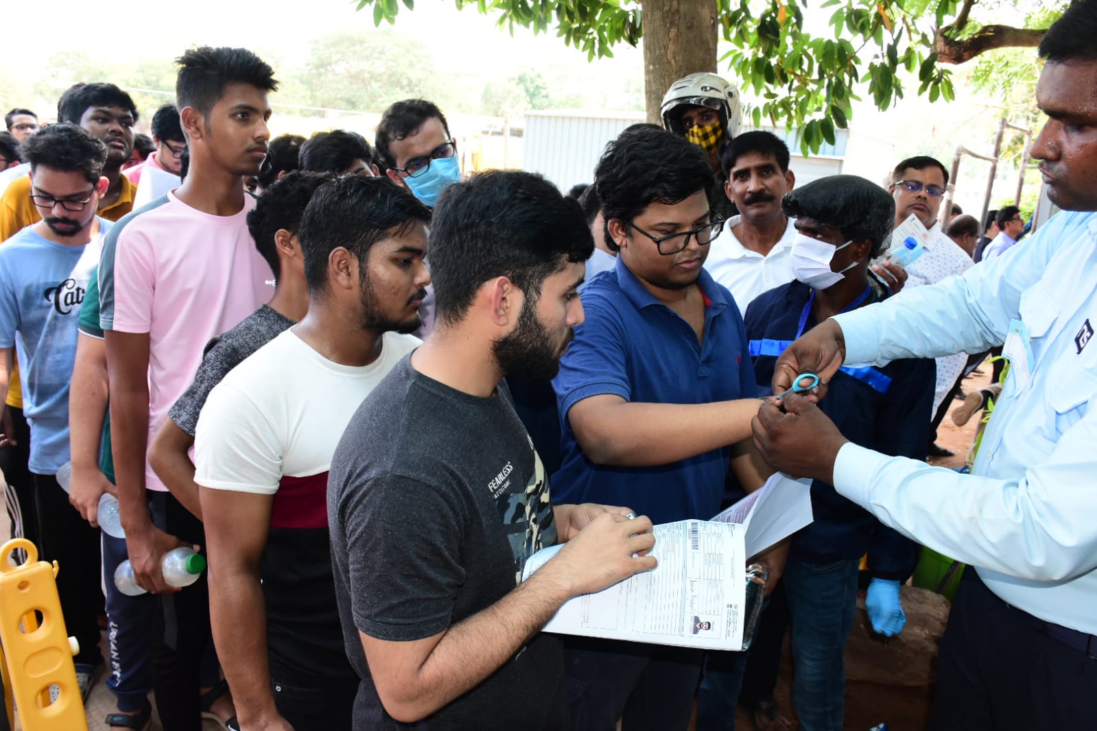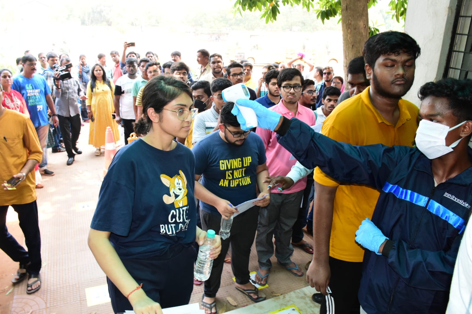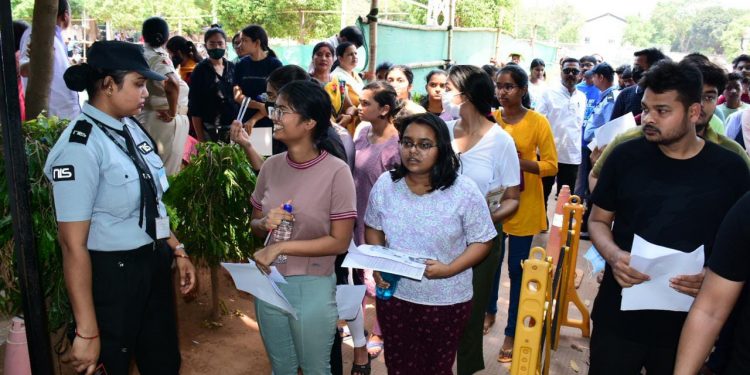 NEET aspirants undergo check, document verification before entering examination hall at Mothers Public School in Bhubaneswar