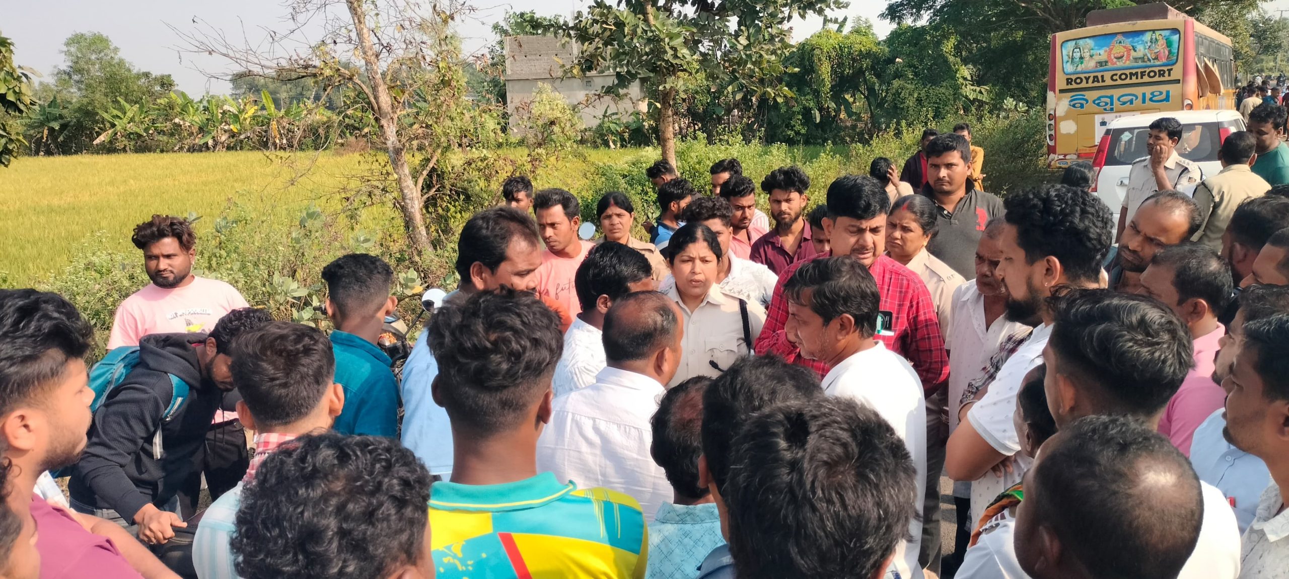 Koraput: Residents of five villages staged a protest near the Bharatmala project camp in Koraput, demanding urgent repair of the severely damaged road from Machara Square to Odapur village. The agitation drew significant public attention as villagers refused to disperse without a firm response from authorities.