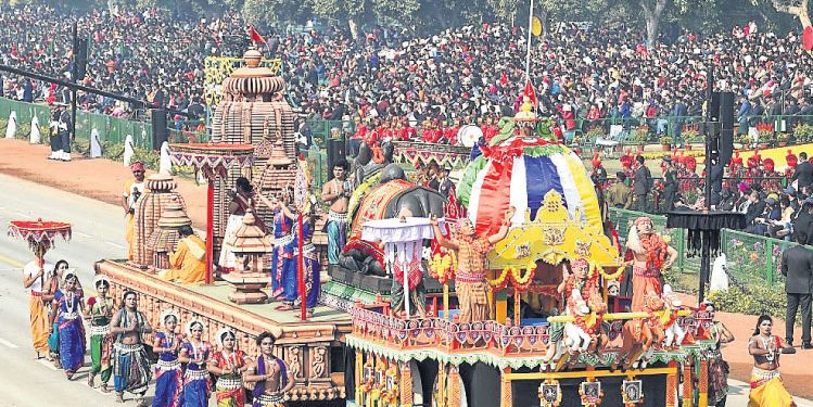 Bhubaneswar: Odisha’s tableau — a replica of Lingaraj Temple and Rukuna Rath of Lord Lingaraj — at the Republic Day parade in New Delhi has been adjudged the second best.