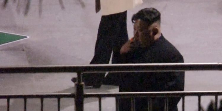 Footage by Japan’s TBS TV showed Kim, a habitual smoker, taking a pre-dawn smoke break Tuesday at a train station in China hours before his arrival in Vietnam for his high-stakes summit with President Donald Trump over resolving the international standoff over the North’s nuclear weapons and missiles.