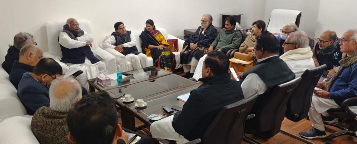 Leaders of the Congress, DMK, TMC, SP, JD(U), Shiv Sena, CPI(M), CPI, NCP, IUML, NC, AAP and the Kerala Congress were present at the meeting.