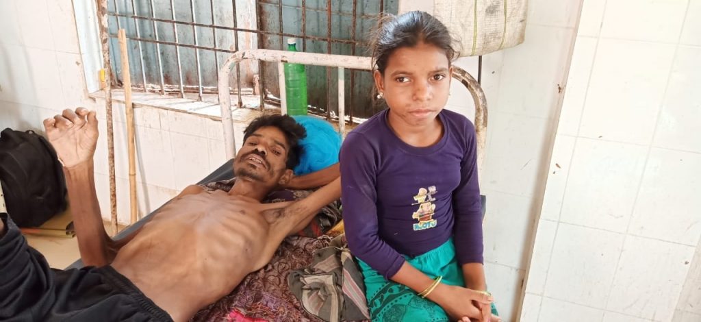 Sunday, the man, Baidhar Nayak (42), son of Nabha Nayak, was found admitted to the district headquarters hospital with her minor daughter by his side taking care of him.