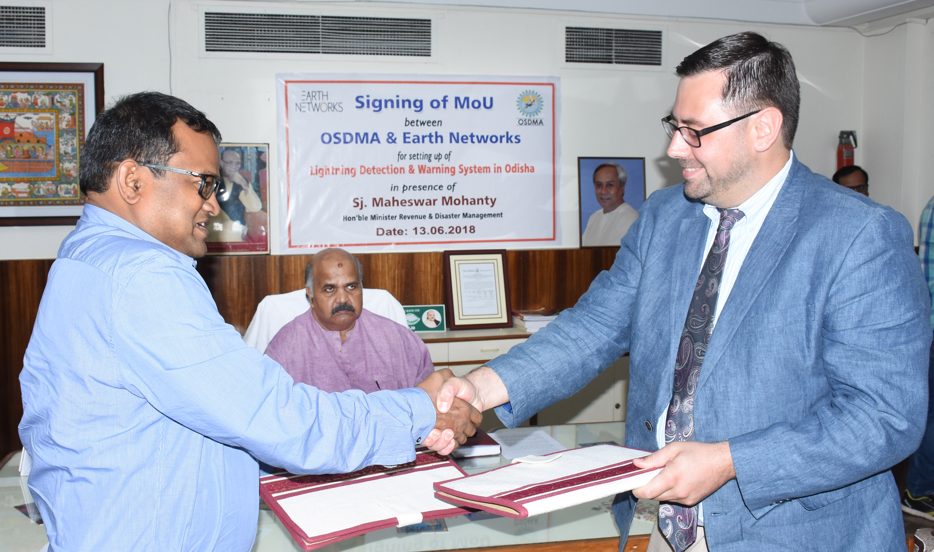 Managing Director of Odisha State Disaster Management Authority (OSDMA) Bishnupada Sethi signed the MoU with Earth Networks in the presence of Revenue and Disaster Management Minister Maheswar Mohanty here.