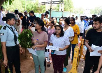 NEET aspirants undergo check, document verification before entering examination hall at Mothers Public School in Bhubaneswar Odia students return ...