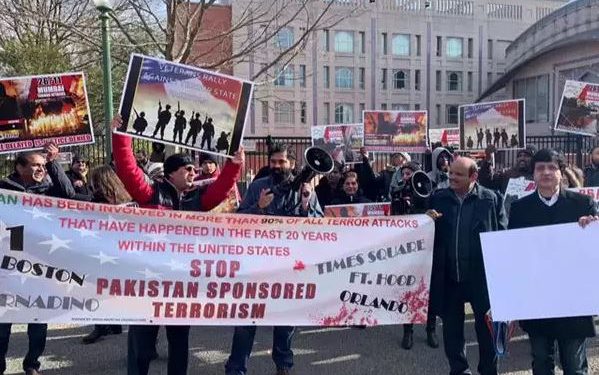 Protesters, representing different communities and backgrounds, gathered to voice their anguish and strong condemnation of Pakistan’s policy and practices of state-sponsored terrorism against neighbouring India and Afghanistan as well as some western countries, said Mohan Sapru, the rally organizer and Washington, DC coordinator of the Global Kashmiri Pandit Diaspora.