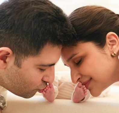 In a collaborative post on Instagram, Parineeti and Raghav shared a picture of them lovingly kissing the tiny toes of their baby boy.