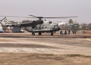 A helicopter performs a trial landing at a temporary helipad in Puri ahead of President’s visit Crowds throng Infosys Road during Patha Utsav 2026 as the bustling street transforms into a vibrant hub of culture in Patia, Bhubaneswar A thick blanket of fog envelops Srimandir,...