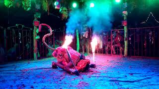 In addition, the mythological characters perform a classical lyric-based dance form known locally as “Adheipaada” (two and half steps style) throughout the leela irrespective of sequences and characters with little variance.
