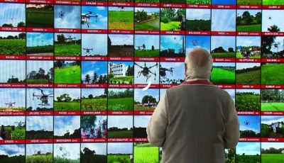 New Delhi: In a special drive aimed at helping farmers, Prime Minister Narendra Modi Saturday flagged off 100 kisan drones across different cities and towns for spraying pesticides or carrying agro-products to markets.